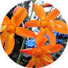 姫檜扇水仙の朱色と紫陽花の青。目が覚めるよう。 |